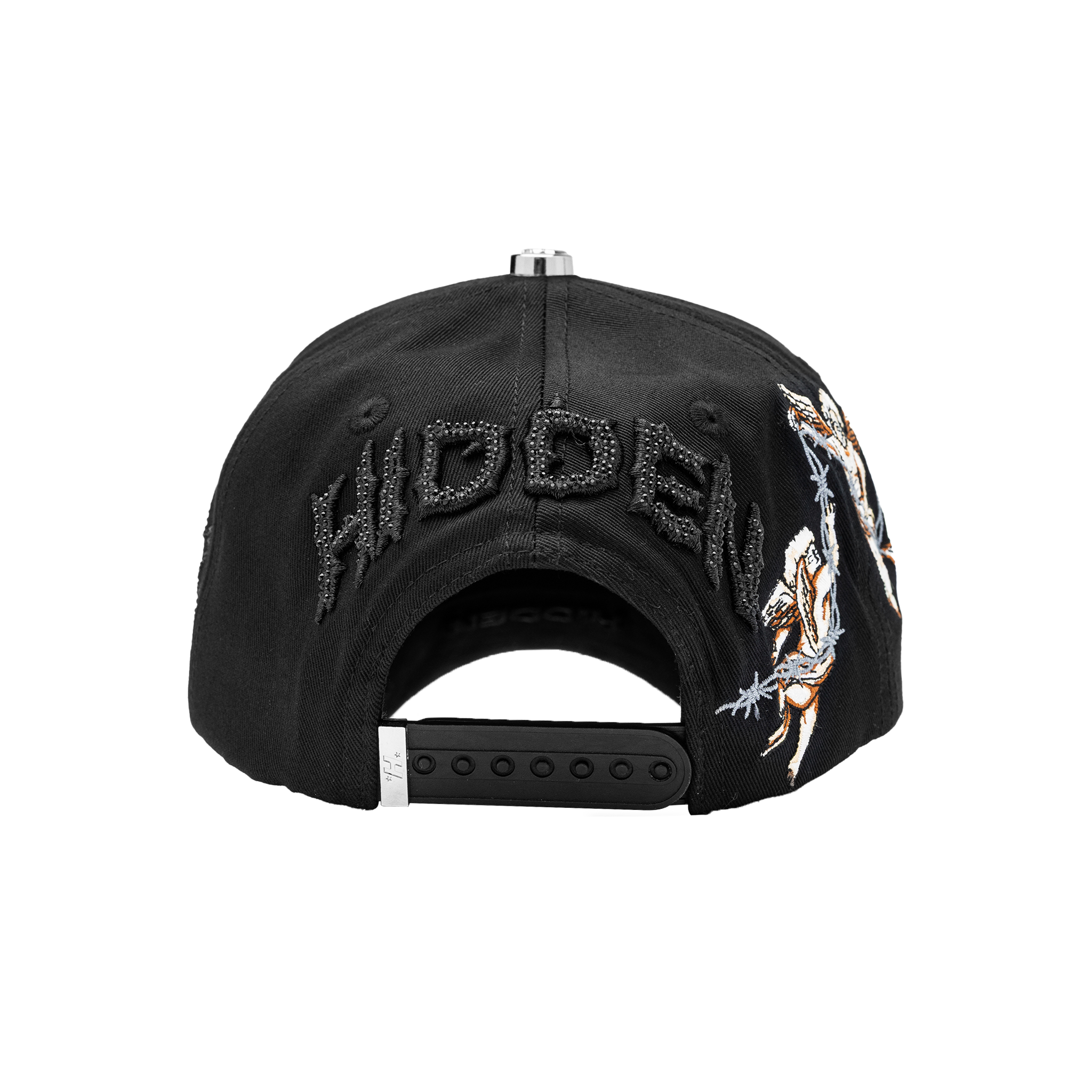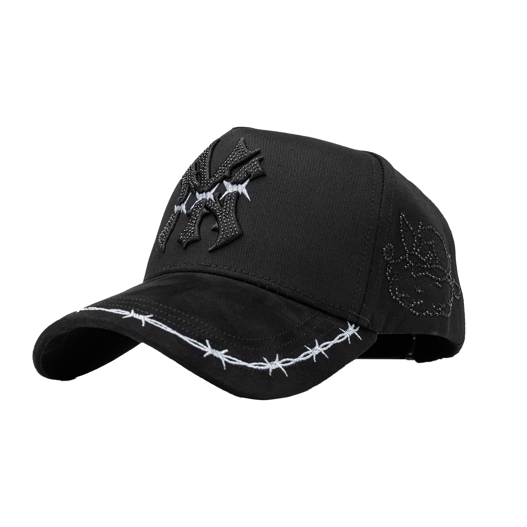 ✔ 3D embroidered design with black rhinestones