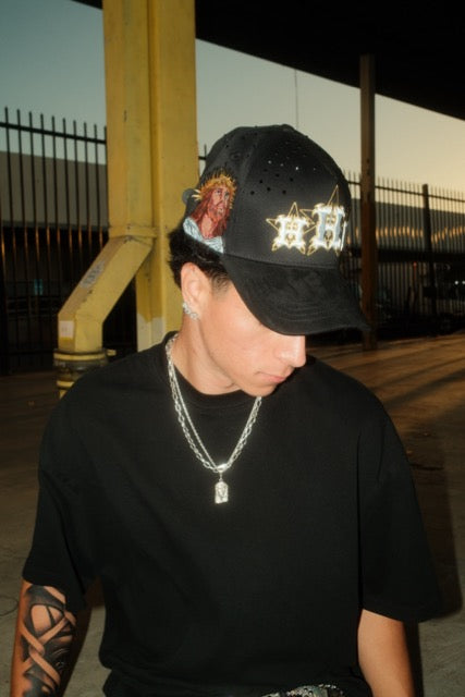 Details: Black in color, gemstone, 3D embroidery, black under visor, black sweatbands