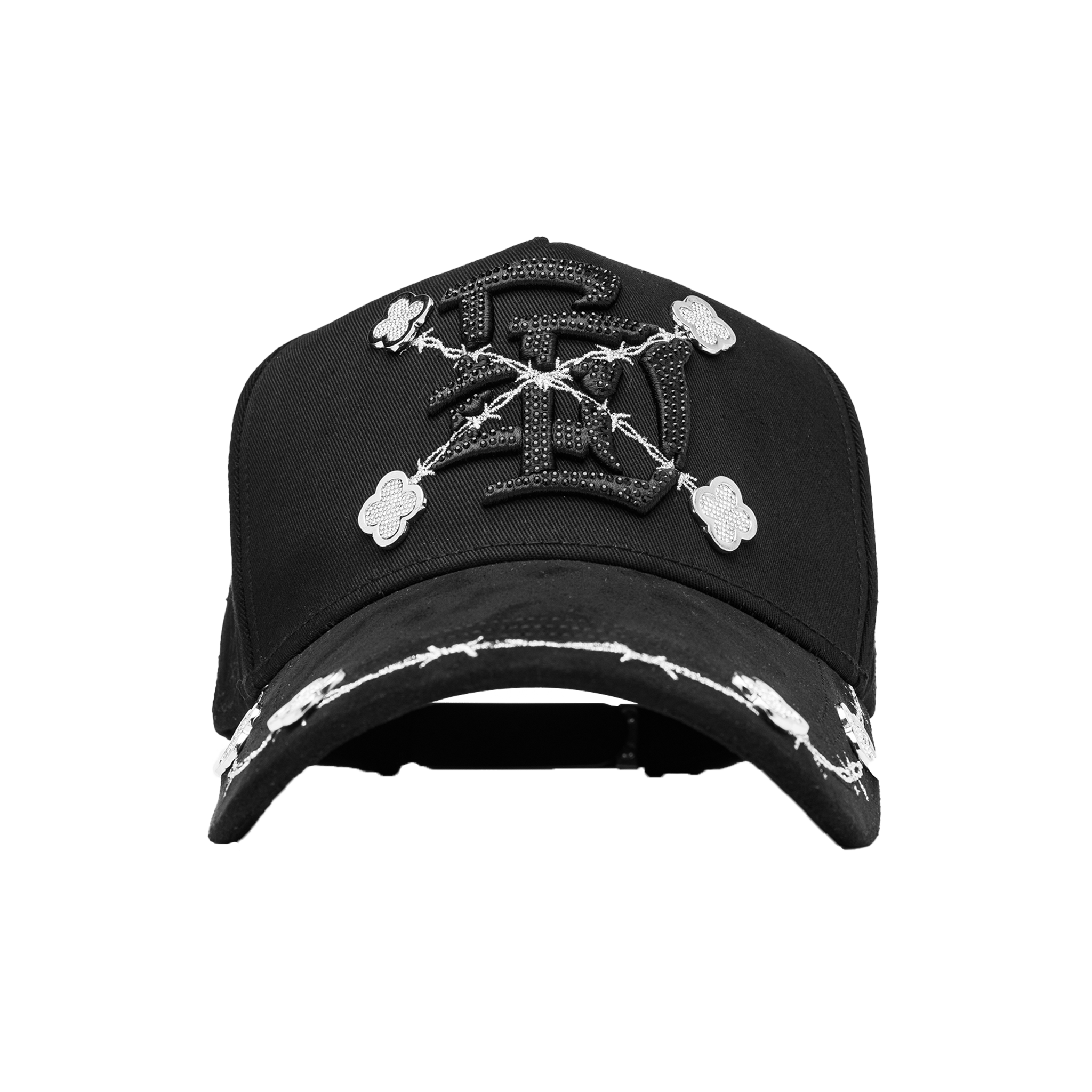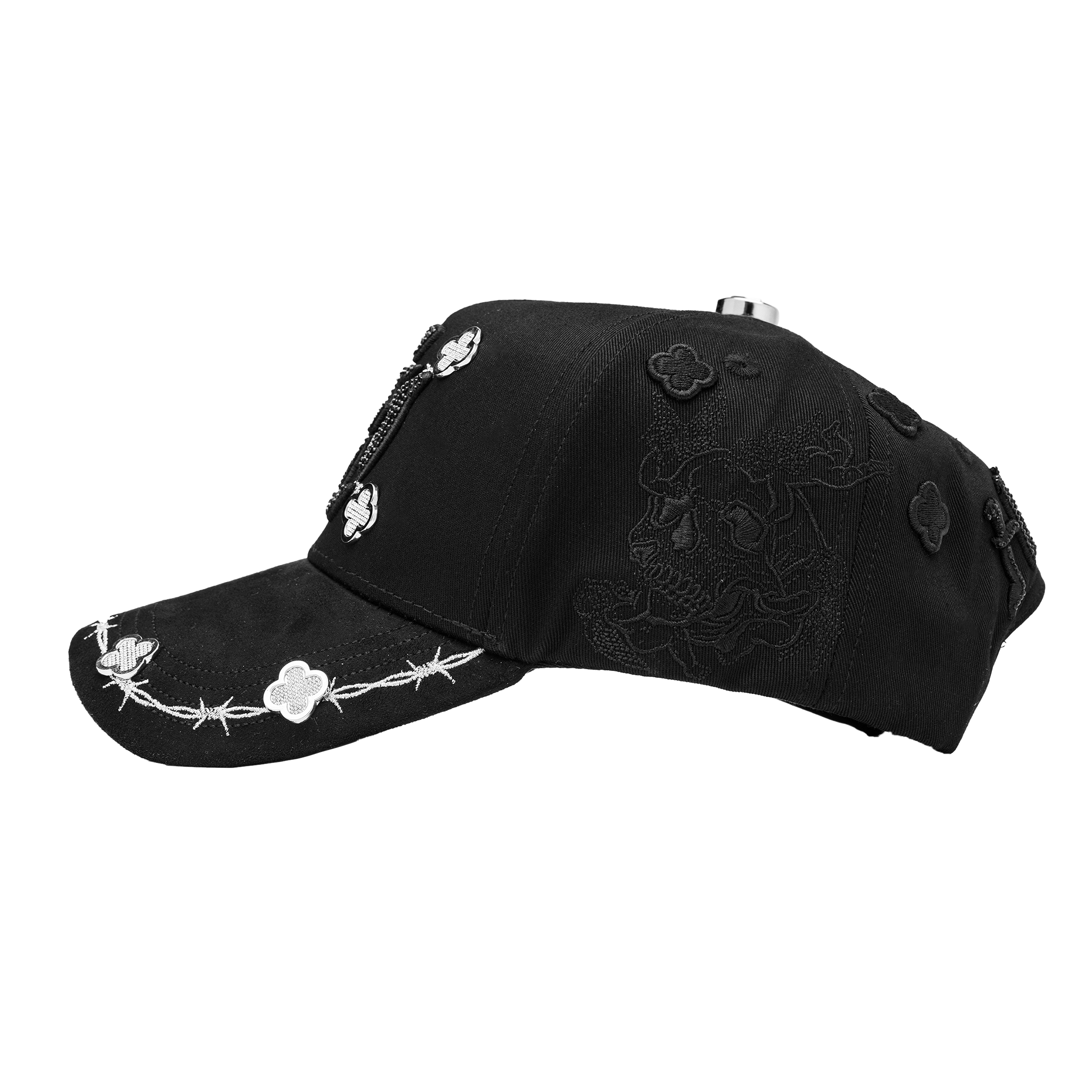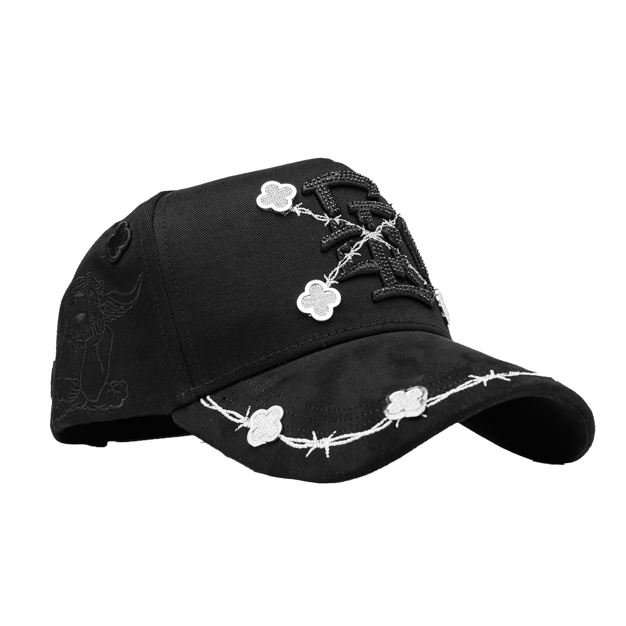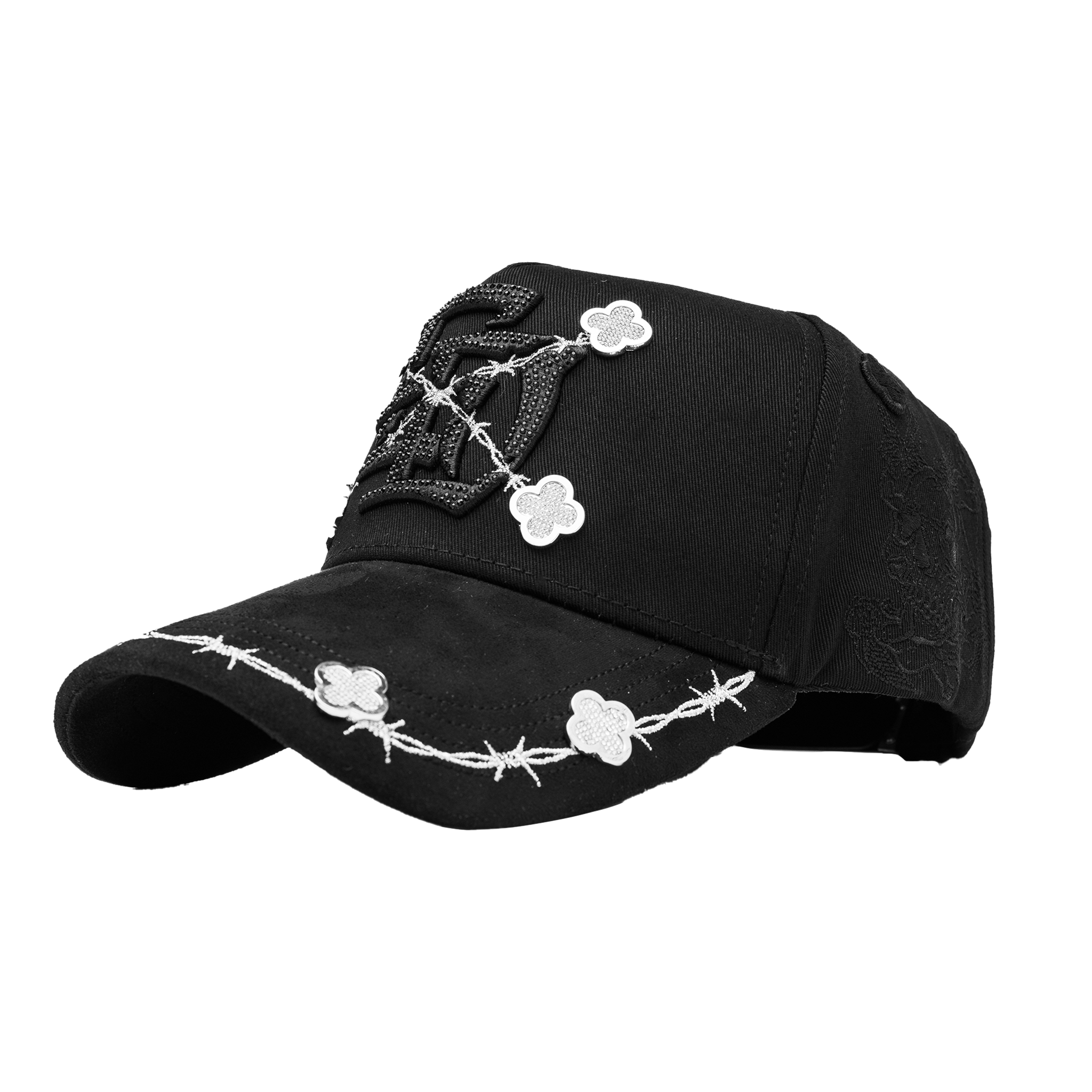 ✔ 3D embroidered design with black rhinestones